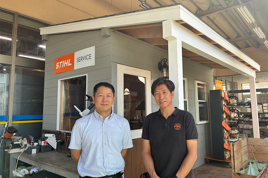 有限会社村田金物店の本社がある下関市豊田町は、山々に囲まれた自然豊かな中山間地である。水稲や野菜などの農業も盛んであり、林業や農業への従事者が多い。このような地理的背景を踏まえ、同社では従来から国産メーカーの電動工具を取り扱ってきたが、2018(平成30)年から、世界的ブランドであるドイツのSTIHL社製品の取り扱いを開始した。STIHL社製品を取り扱うには、当然のことながら様々な適格要件が存在し、とりわけ消耗品交換や修理等のアフターサービスまでを一貫して行うことがSTIHL社の販売ポリシーである。