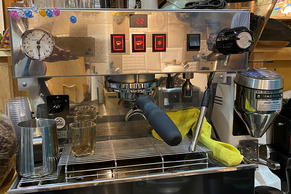 若林氏には、エスプレッソマシンを導入して、メニューの幅を広げ、来店客の満足度を高め、さらに珈琲豆の販売促進にも繋げたいという明確なビジョンがあった。加えて、地域の高齢者や観光客に対応するためには一人で行うオペレーションの効率化も実現したいと考えていた。