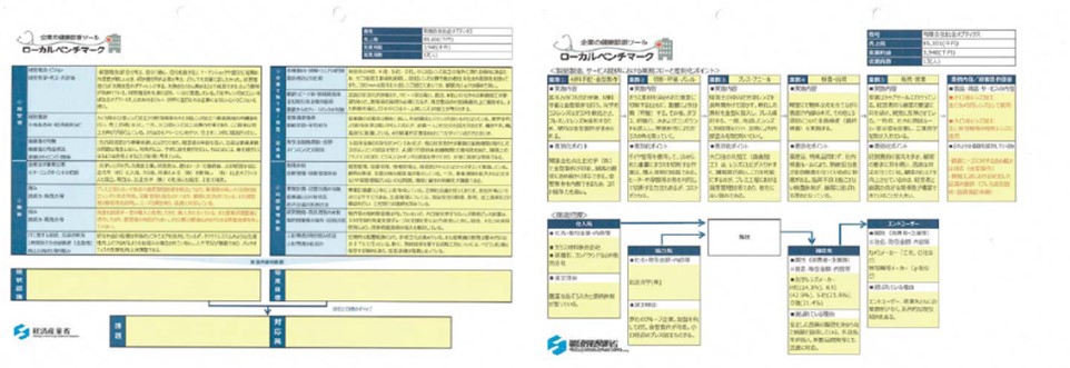 企業の経営状態の把握、いわゆる「企業の健康診断」を行うツールである。企業の経営者と金融機関・支援機関等がコミュニケーション(対話)を行いながら、ローカルベンチマーク・シートなどを使用し、企業経営の現状や課題を相互に理解することで、個別企業の経営改善や地域活性化を目指す。