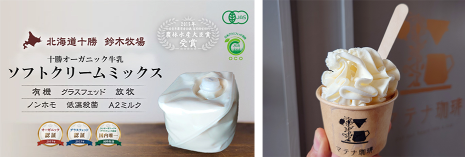 鈴木牧場のソフトクリームミックスを使用したソフトクリーム(納品先)(右)
