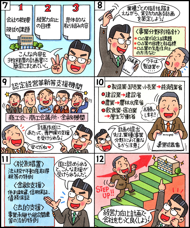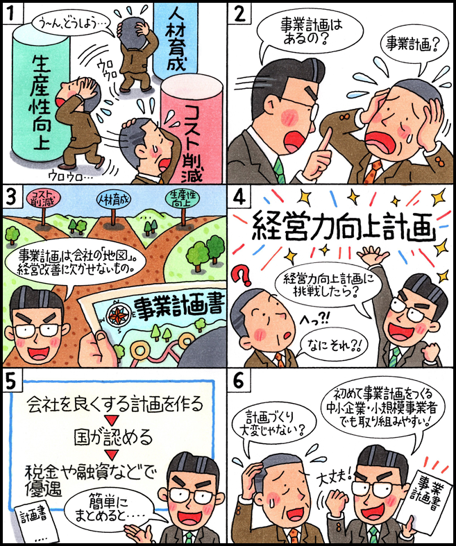 経営力向上計画は「これから会社の力を高めるために、何をどう改善していくか」を簡潔にまとめた事業計画であり、はじめて計画を策定するという事業者も取り組みやすいものになっています。