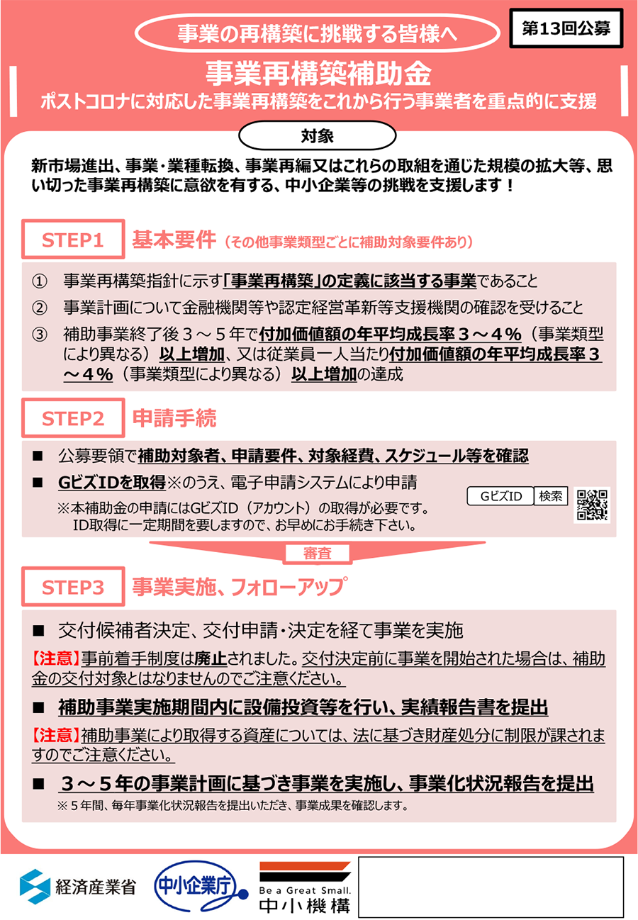 事業再構築補助金(第13回)のチラシ